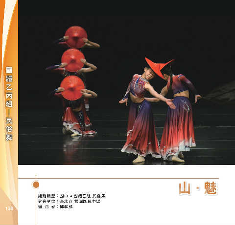 乙 體 組 丙 團 民 俗 舞 ─ ʆgቾ ʆgቾ 組別類型:國中 A 團體乙組 民俗舞 參賽單位:臺北市 雙園國民中學 138 攝 影 者:邱和郎