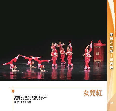 組 丙 團 體 乙 舞 民 俗 ─ ɾՅߎ ɾՅߎ 組別類型:國中 A 團體乙組 民俗舞 參賽單位:桃園市 中興國民中學 攝 影 者:黃水原 139
