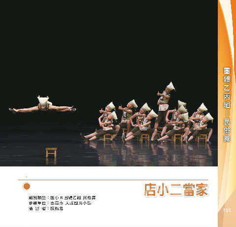 組 丙 團 體 乙 舞 民 俗 ─ ֳʃɚ ֳʃɚ 組別類型:國小 B 團體乙組 民俗舞 參賽單位:臺南市 大成國民小學 攝 影 者:陳梅君 155