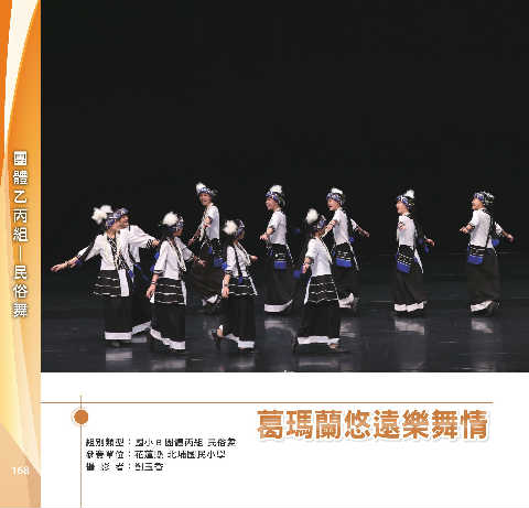 乙 體 組 丙 團 民 俗 舞 ─ ီᚆઅჃᆀႀઋ ီᚆઅჃᆀႀઋ 組別類型:國小 B 團體丙組 民俗舞 參賽單位:花蓮縣 北埔國民小學 168 攝 影 者:劉玉香