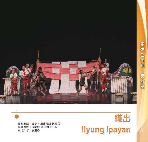 組 丙 團 體 乙 舞 民 俗 ─ ᔌ̈ ᔌ̈ 組別類型:國小 B 團體丙組 民俗舞 llyung lpayan 參賽單位:宜蘭縣 寒溪國民小學 llyung lpa y an 攝 影 者:劉玉香 171