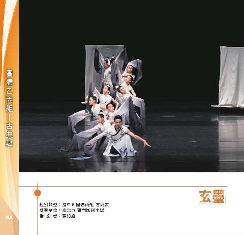 體 乙 組 丙 團 舞 典 古 ─ ͖ኈ ͖ኈ 組別類型:國中 B 團體丙組 古典舞 參賽單位:臺北市 龍門國民中學 200 攝 影 者:陳柏殷
