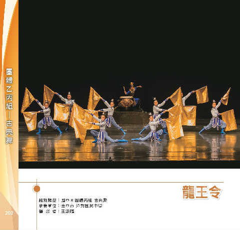 體 乙 組 丙 團 舞 典 古 ─ Ꮂˮ˿ Ꮂˮ˿ 組別類型:國中 B 團體丙組 古典舞 參賽單位:臺中市 潭秀國民中學 202 攝 影 者:王派福