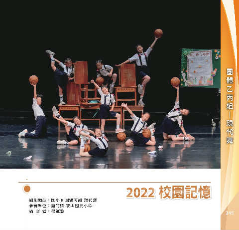 丙 組 團 體 乙 舞 代 現 ─ 2022 ࣧাኳ 2022 ࣧাኳ 組別類型:國小 B 團體丙組 現代舞 參賽單位:新竹縣 寶山國民小學 攝 影 者:鄒運發 245
