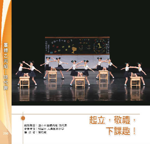 體 團 組 丙 乙 舞 代 現 ─ ৎͭdหᓿd ৎͭdหᓿd 組別類型:國小 B 團體丙組 現代舞 ɨሙሳl 參賽單位:桃園市 大業國民小學 ɨሙሳl 250 攝 影 者:陳柏殷