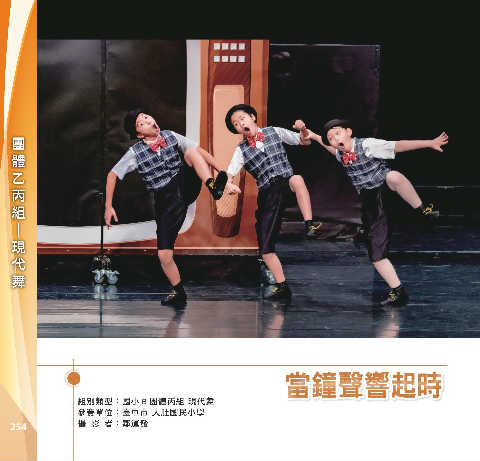 體 乙 組 丙 團 舞 代 現 ─ ᙒᑊᚤৎࣛ ᙒᑊᚤৎࣛ 組別類型:國小 B 團體丙組 現代舞 參賽單位:臺中市 大肚國民小學 254 攝 影 者:鄒運發