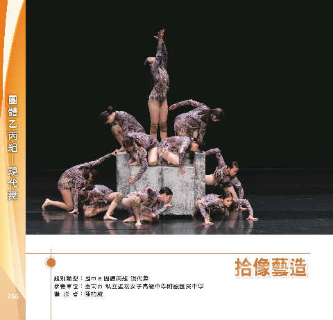 體 乙 組 丙 團 舞 代 現 ─ ܽ྅ᖵி ܽ྅ᖵி 組別類型:國中 B 團體丙組 現代舞 參賽單位:臺南市 私立聖功女子高級中學附設國民中學 256 攝 影 者:陳柏殷
