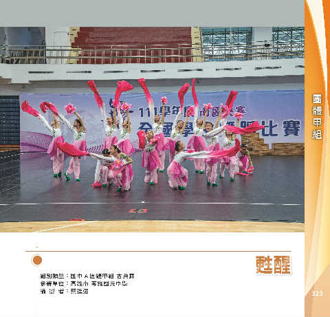 甲 組 團 體 ፴ ፴ 組別類型:國中 A 團體甲組 古典舞 參賽單位:高雄市 苓雅國民中學 攝 影 者:蔡進強 323